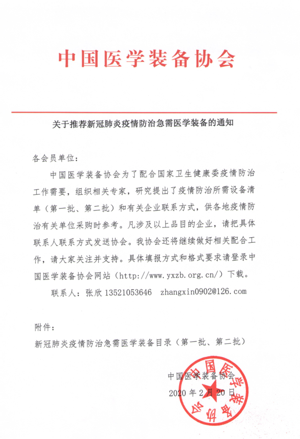 新冠疫情防治急需医学装备通知