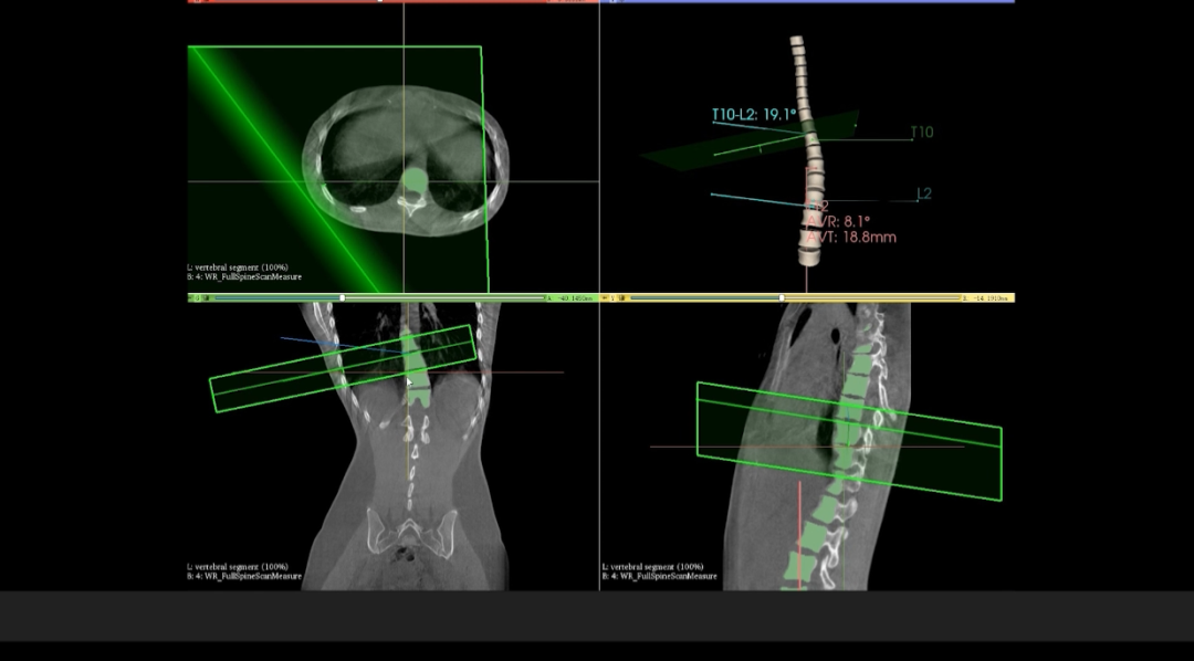 在与华西医院开展的技术合作中,WR-3D的立位脊柱三维摄影技术能提供更加丰富的临床信息,通过WR-3D的三维全脊柱扫描与重建,即可完成脊柱三维影像重建,无需进行角度拼接,消除二维Cobb角度测量的误差,可以实现包括Cobb角、前/后凸角、椎体偏移/旋转向量图、椎体旋转角条形图、矢/冠状面垂直轴偏距数据的自动测量;这项技术将为脊柱矫形的临床诊断带来从定性到定量的转变,提供丰富的数据和图表,为临床尤其是手术方案的规划制定提供非常精准的定量化数据支撑,不仅可以对脊柱冠状面参数进行精准的定量评估,还可对矢状面包括,颈椎前凸、后凸、腰椎前凸和后凸进行非常精准的评估。