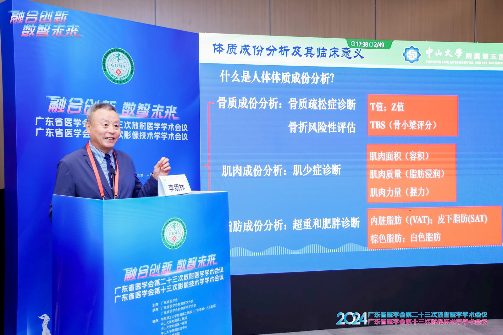 李绍林教授带领大家从骨质成份、肌肉成份、脂肪成份分析,分享了《体质成份分析影像学研究及其临床意义》。