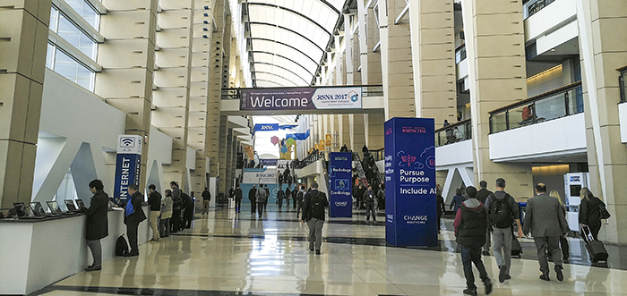 11月26日-12月1日,第103届北美放射学会年会在美国芝加哥的麦考密克展览中心举行。北美放射协会(RSNA)是一个拥有超过48000会员的跨国医学组织,是全球最大的医学会议,会议吸引了60000个参会者聚集在芝加哥迈考密克展览馆。